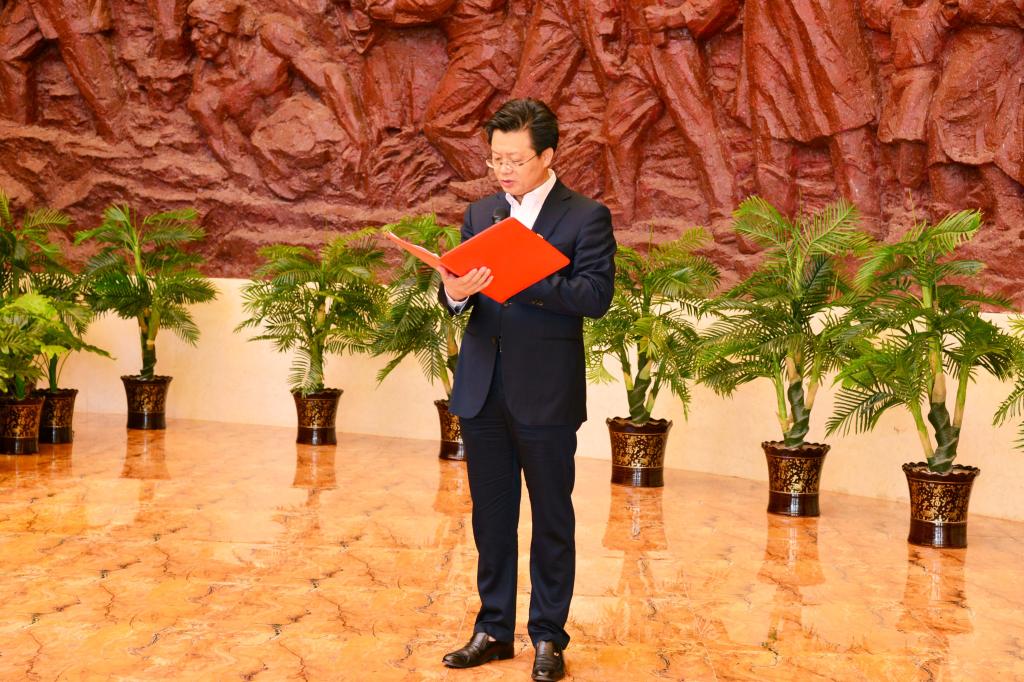 全体人员在乌兰察布党史馆重温入党誓词。