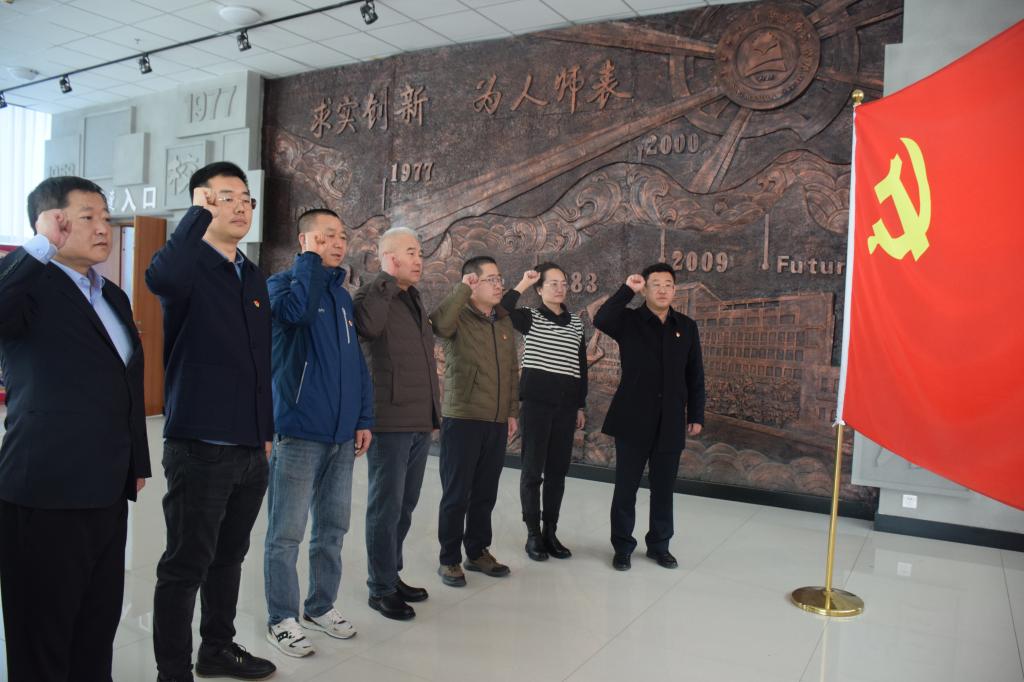 参观前,支部党员面对鲜艳的中国共产党党旗,由李瑞俊领誓重温入党誓词。宣誓后,大家沿着展陈路线,认真听取关于学校发展历程的详细讲解,深刻感悟pp电子作为少数民族地区师范院校为党育人、为国育才的初心使命。