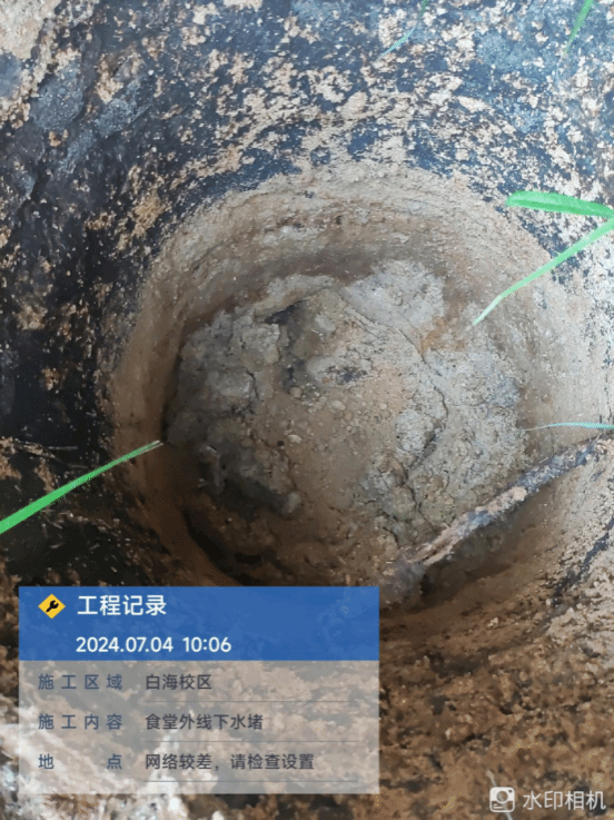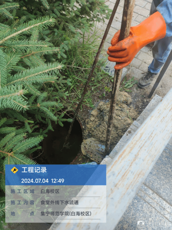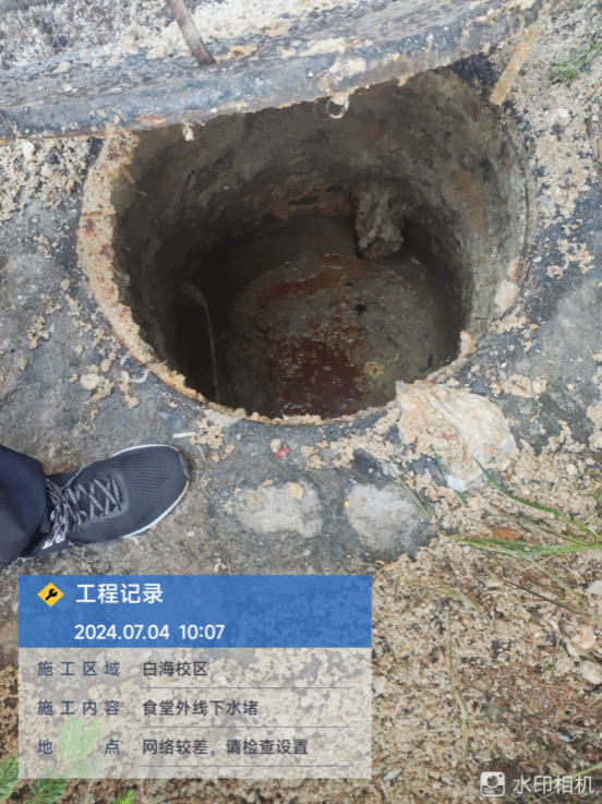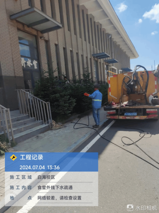 7月4日上午,维修白海校区食堂外线下水道。