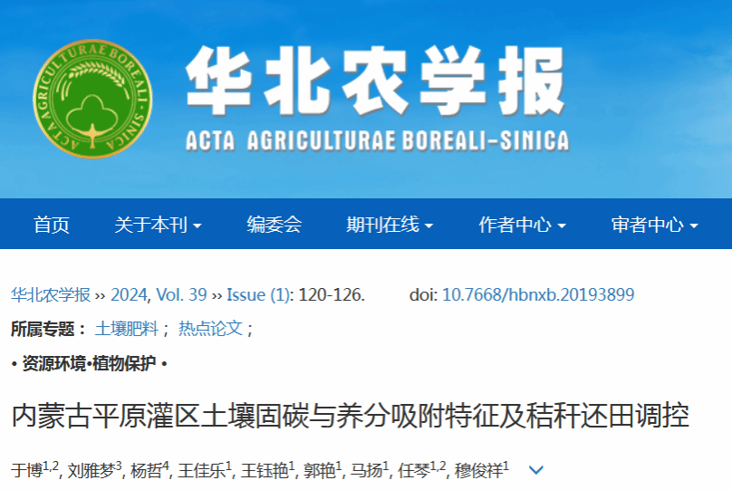 近日,《华北农学报》发布 2023-2024 年高被引论文专辑,精选 30 篇获国家及省级基金支持、聚焦农业可持续发展的高影响力成果。pp电子生命科学与技术学院于博副教授团队的研究论文《内蒙古平原灌区土壤固碳与养分吸附特征及秸秆还田调控》成功入选,彰显pp电子农业科研实力获学界认可。