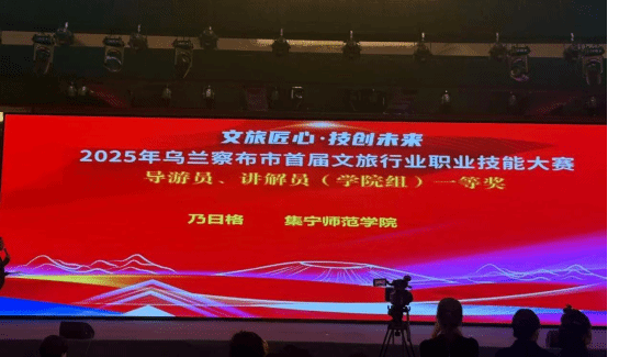2025年12月10日,由乌兰察布市旅游局主办的“乌兰察布市首届文旅行业职业技能大赛”在乌兰察布体育馆举行。经过激烈角逐,我院学生在曹晓慧与董彦老师指导下荣获一等奖(乃日格),二等奖一名(郭帅利颖),三等奖一名(董艳洁),充分展现了我院学生深厚的人文素养与良好职业技能。
