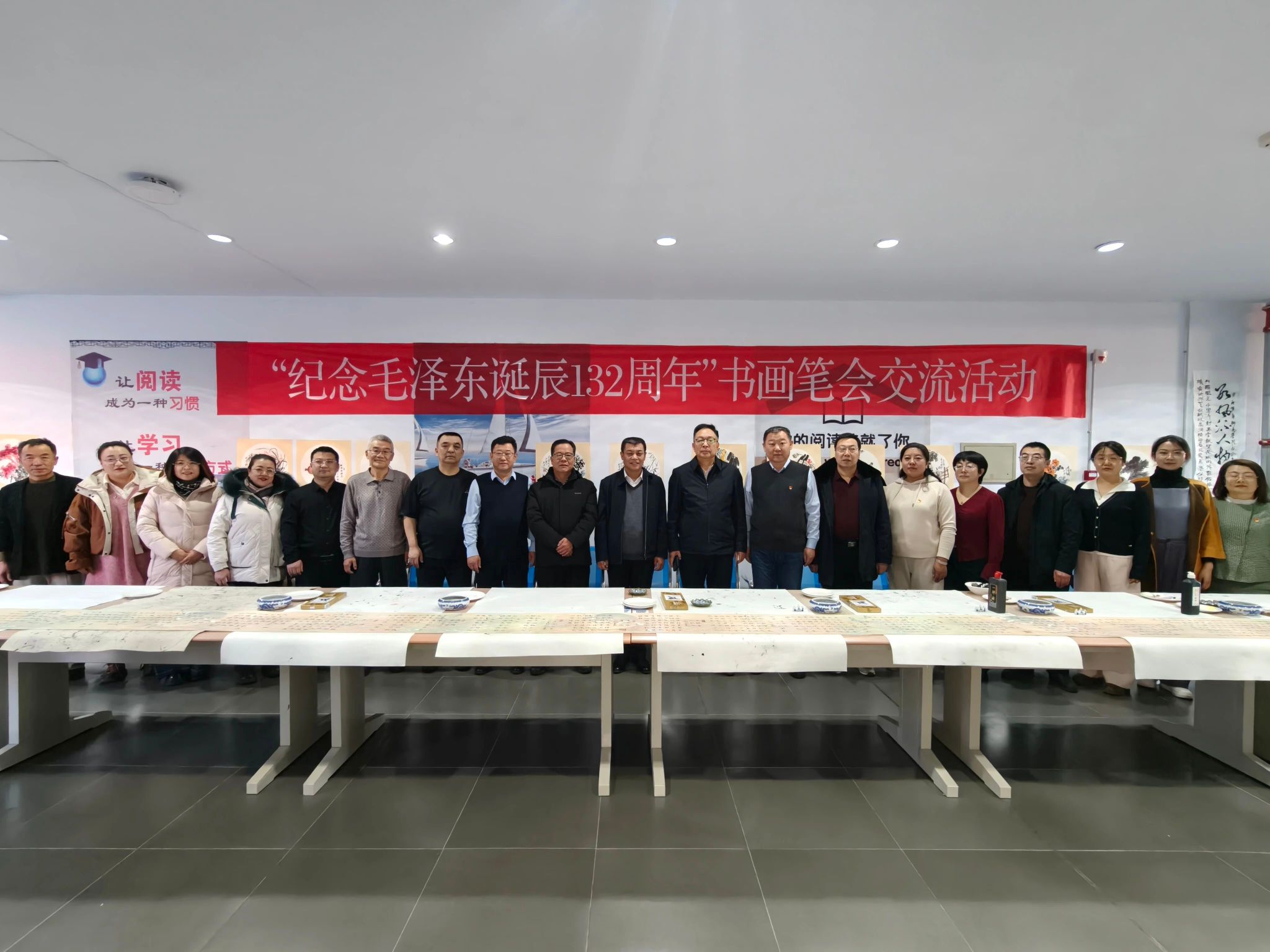 pp电子官方网站举办“纪念毛泽东同志诞辰132周年”书画笔会活动