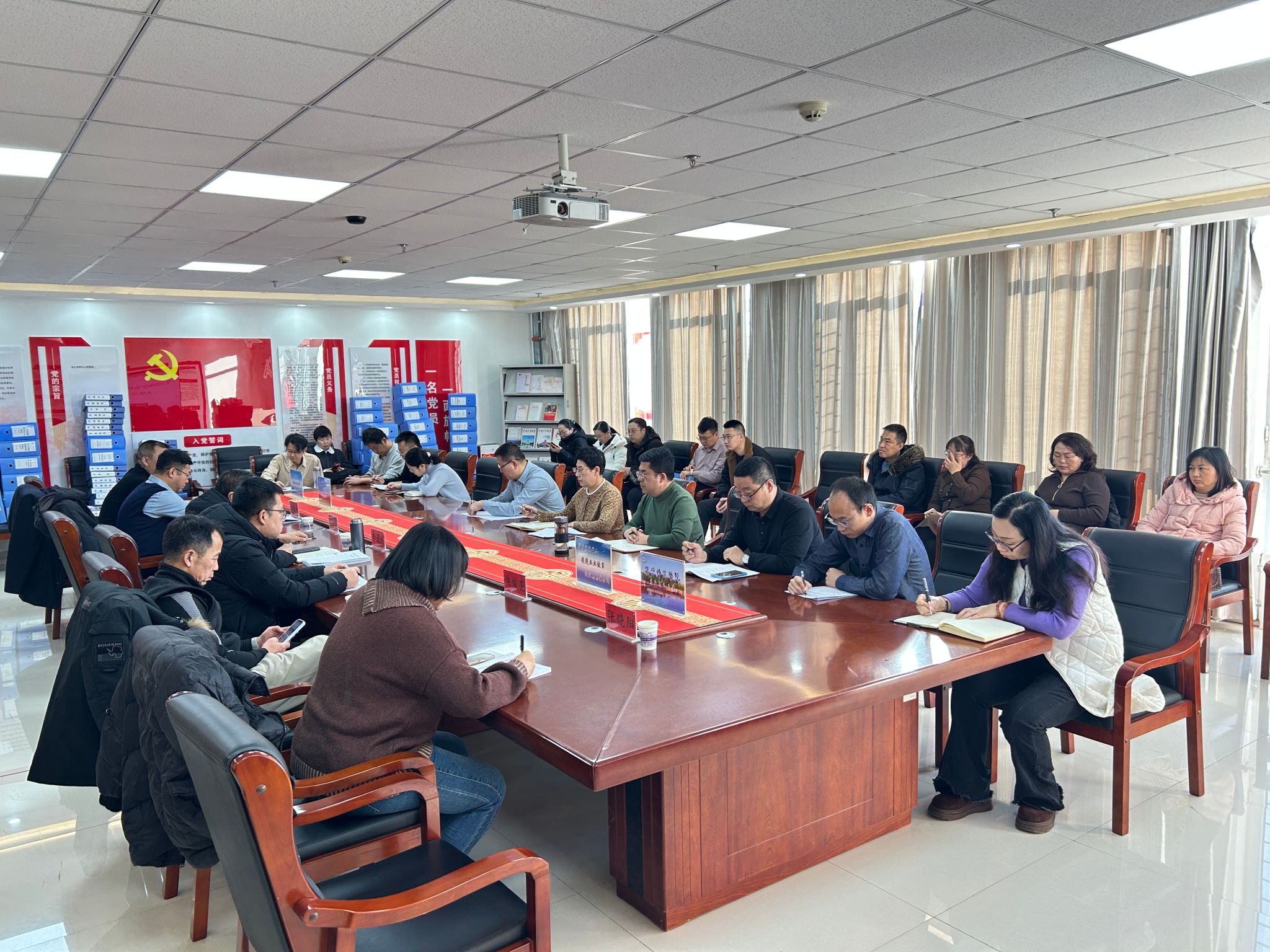 为深入学习贯彻党的二十届四中全会精神,扎实推进“学习四中全会精神,推动学校高质量发展”大学习大讨论活动走深走实,近日,物理与电子信息工程学院召开专题研讨会。校党委副书记李景杰,党委委员、统战部部长赵向军,党委委员、宣传部部长郭英,党委委员、组织部部长李瑞俊,工会主席焦俊亮,离退休人员工作处处长常晓华出席会议。物理与电子信息工程学院党总支书记李贞主持会议,学院全体教职工参加会议。