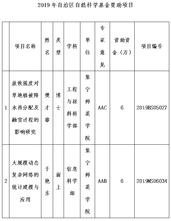 2019年自治区自然科学基金资助项目