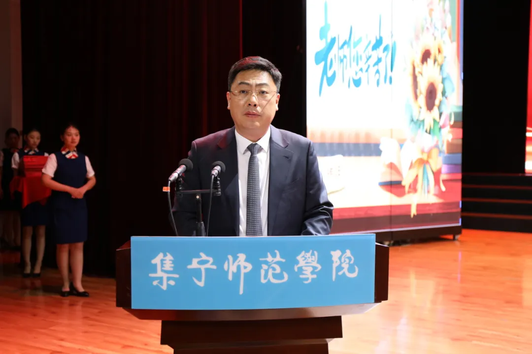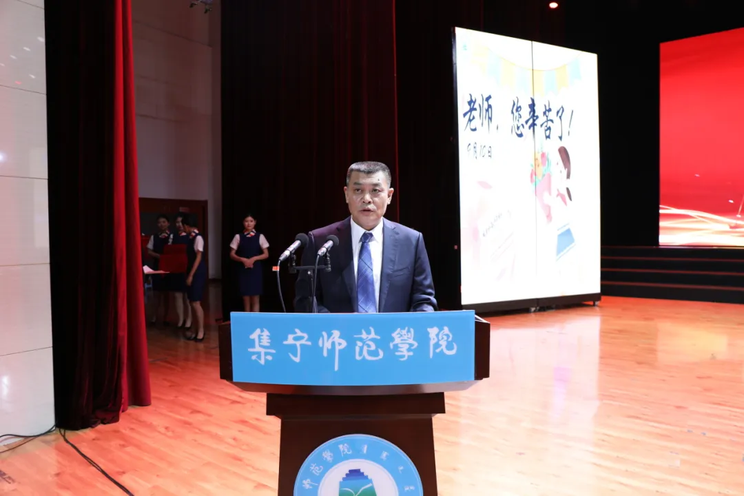 张宝成发表了热情洋溢的致辞。他代表学校向全校广大教职工致以最诚挚的节日问候,向无私奉献、辛勤耕耘受到表彰的优秀教师表示衷心感谢和热烈祝贺!他指出,过去的一年,学校坚持立德树人根本任务,锚定晋位升级发展目标,各项事业在改革中蓬勃发展,在创新中全面提升。全体教师牢记“为党育人、为国育才”的神圣使命,在各自的岗位上春风化雨、润物无声,为学校事业发展做出了贡献。