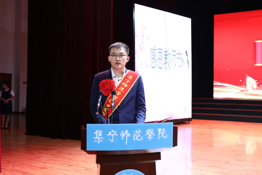 学生代表李想发言。她代表全校学生表达了对老师的感恩之情,并表示未来定会将这份感动化为前进的动力,在求学道路上勤奋钻研、勇于探索,努力成长为有理想、敢担当、能吃苦、肯奋斗的新时代青年,用实际行动回报老师们的谆谆教诲。