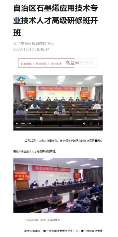 本次高级研修班的举办受到乌兰察布市电视台、乌兰察布日报融媒体中心等各界媒体的广泛关注。这次培训不仅拓宽了pp电子教师的科研视野,同时也搭建了pp电子与业界专家们联系和沟通的平台,专家们纷纷表示,今后将大力支持pp电子在石墨烯领域的科学研究,助推pp电子在产业学院建设、服务地方经济发展等方面创造更多成果。