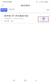 ·预约选座:点击首页的“预约选座”按钮,选择您需要预约的具体时间和阅览室,即可进行座位预约,特别适用于已有明确目标座位的预约情况。