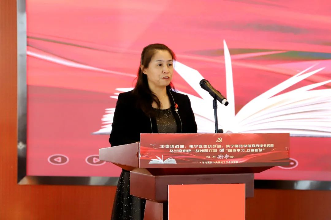 少数民族代表人士、集宁区税务局四级主办 冬日娜:习近平总书记在中央统战工作会议上指出:统一战线因团结而生,靠团结而兴。促进中华儿女大团结,是新时代爱国统一战线的历史责任,我将深入学习宣传中央统战工作会议精神,以更高标准要求自己,努力做一名政治坚定、业务精通、作风优良的干部,发挥自身特点优势,争做民族团结进步的播种人,为建设美丽幸福的集宁家园贡献力量,以优异成绩迎接党的二十大胜利召开。