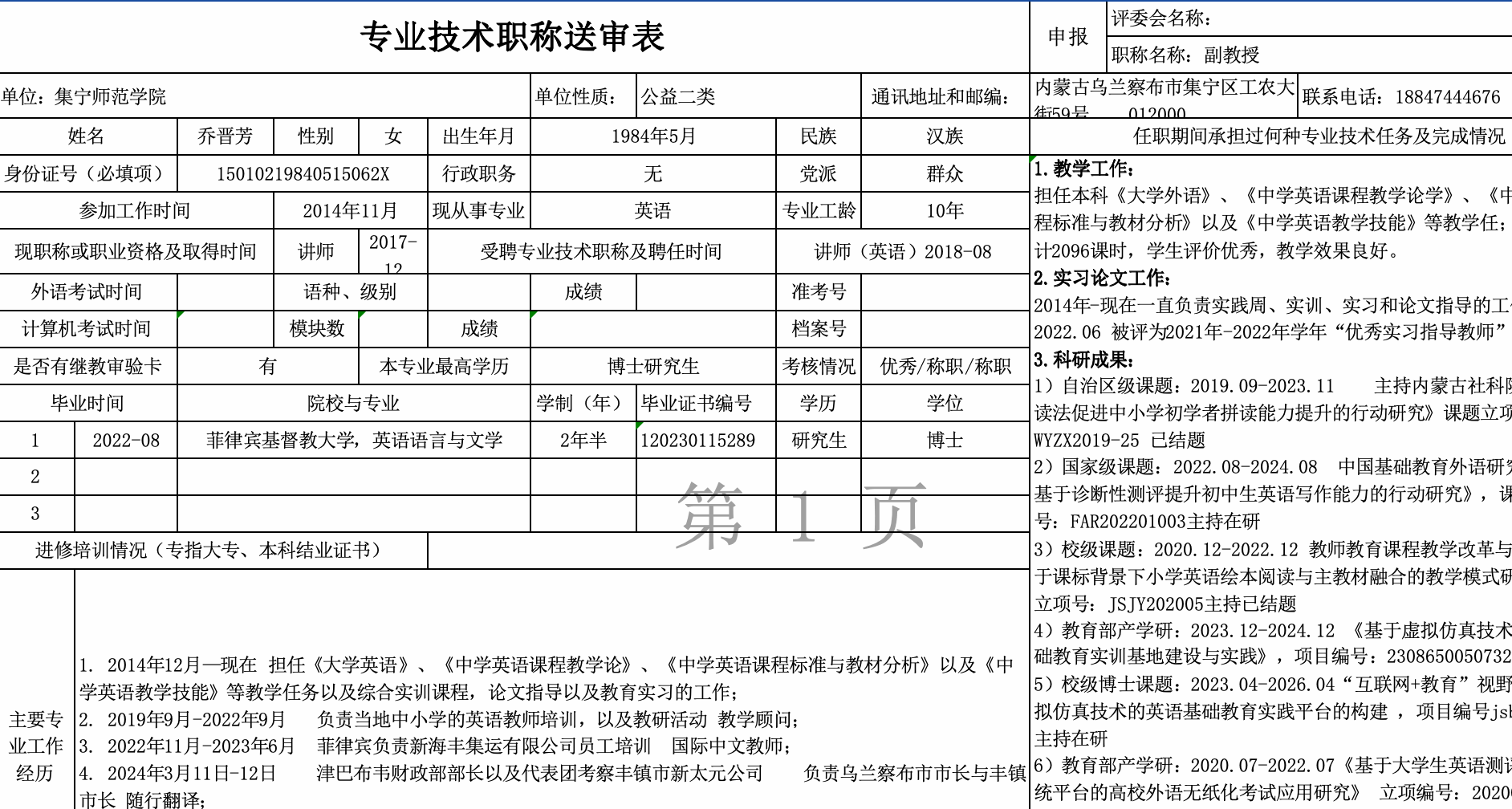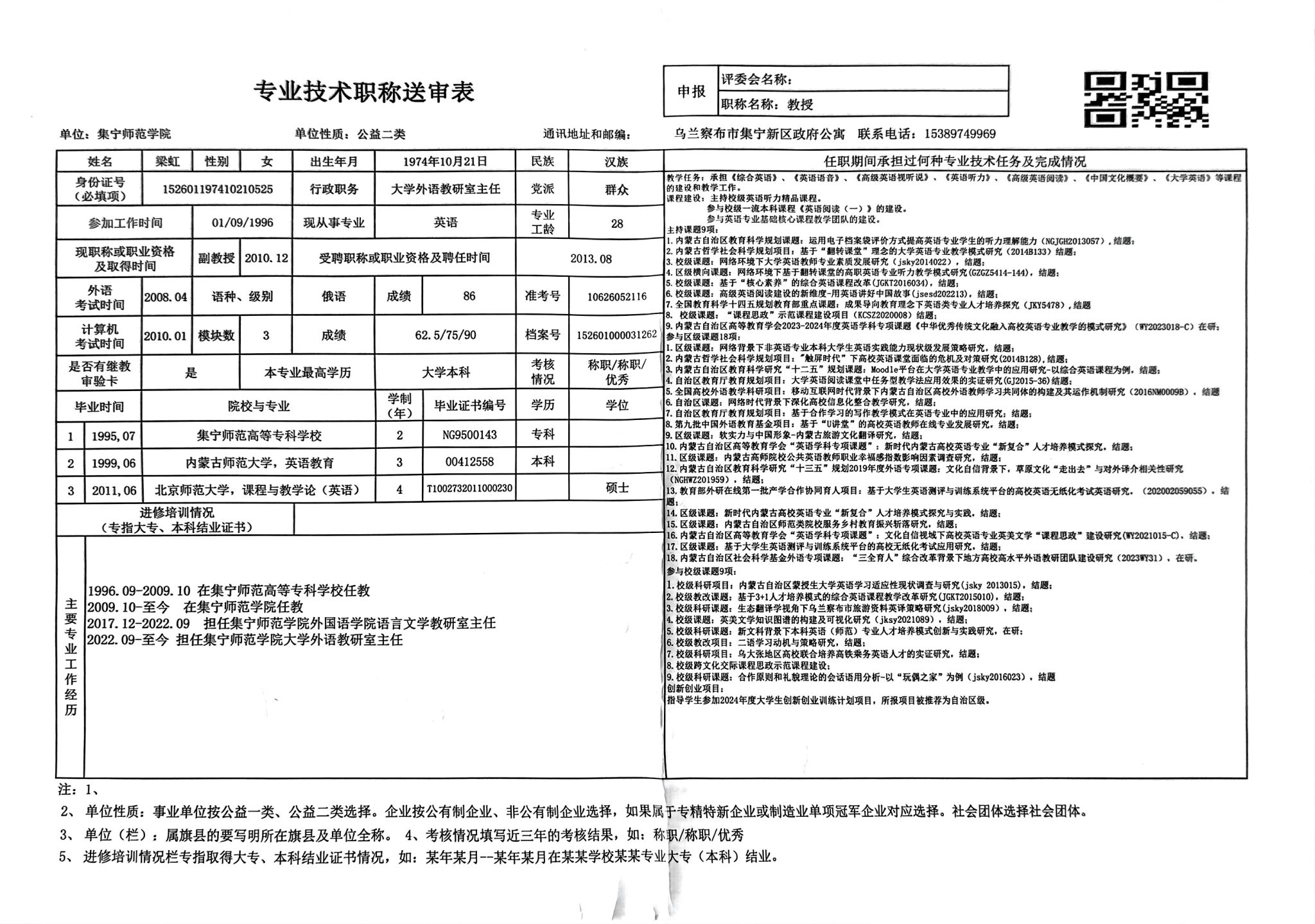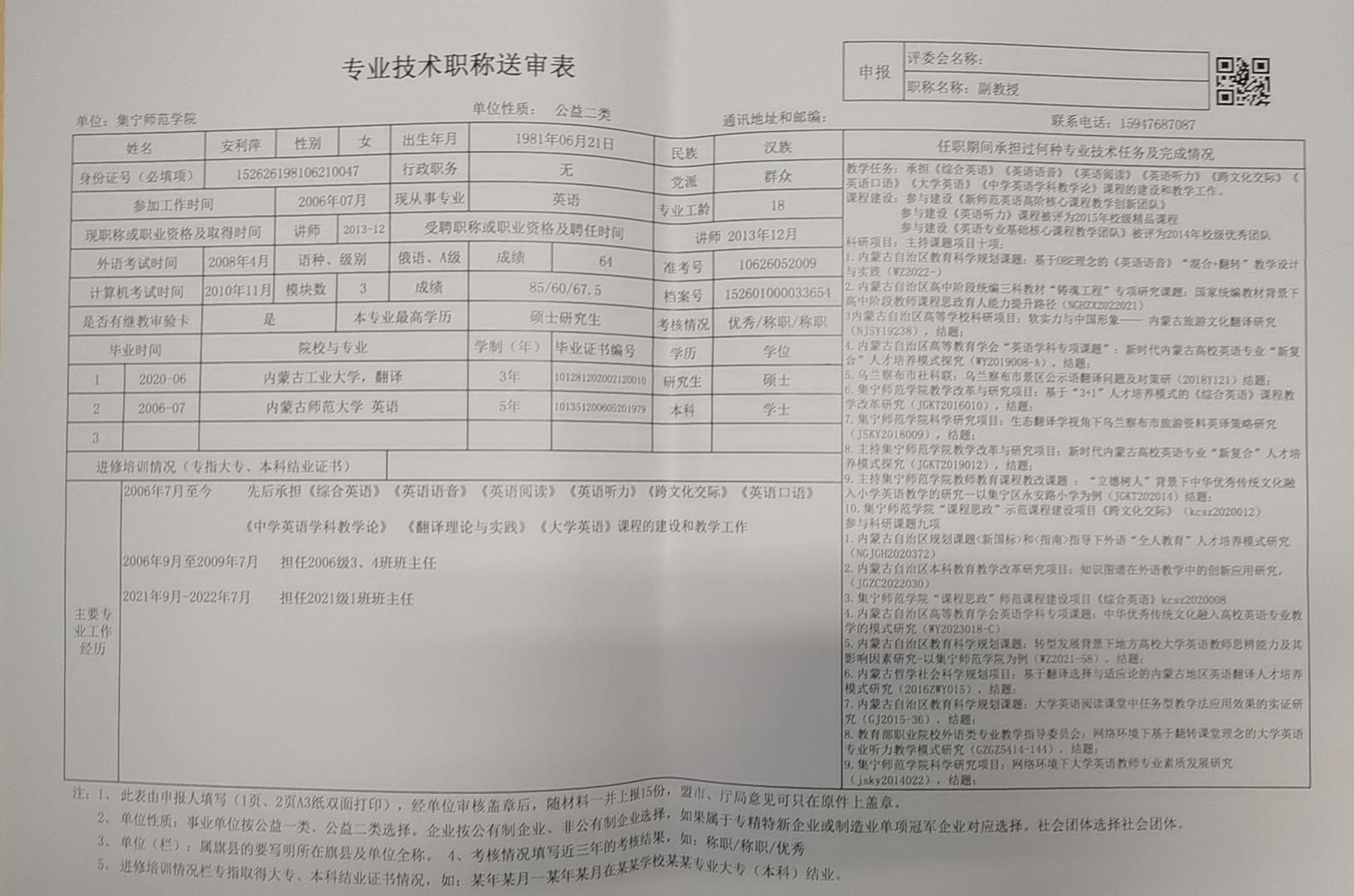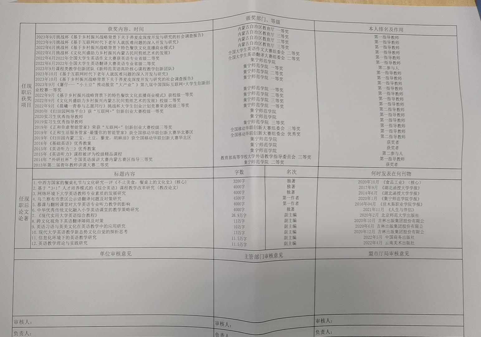 外国语学院2024年职称评审公示