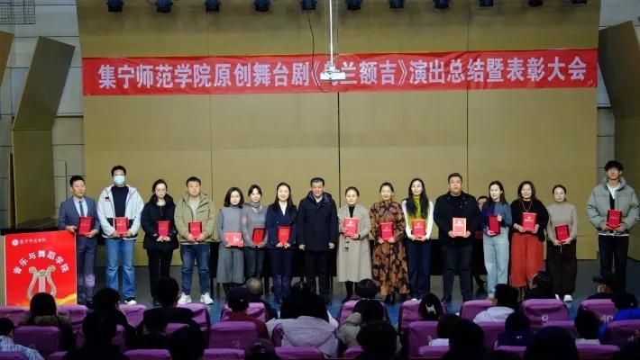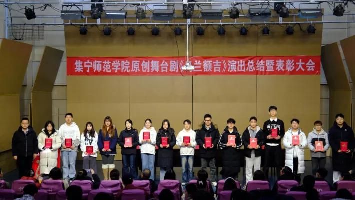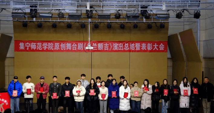 《乌兰额吉》剧目负责人、音乐与舞蹈学院党总支书记武俊芳传达了校党委书记张宝成对全体演职人员的问候和感谢。她回顾了剧目从2023年6月萌芽到两度打磨提升的全过程,团队深入挖掘红色历史,克服重重困难,靠着师生“人人都是导演”的协作与坚持,最终将一部融合红色文化与铸牢中华民族共同体意识的精品力作搬上舞台,并成功获批自治区校园原创精品项目及乌兰察布市精神文明精品项目,为学校争得了荣誉。