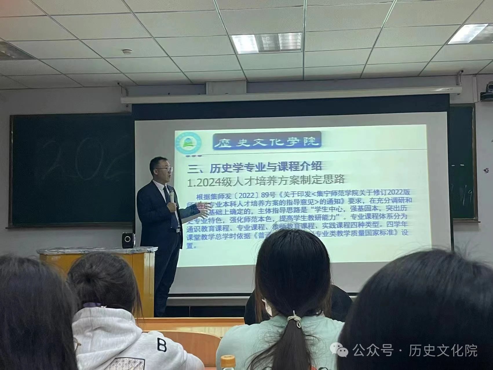 职业生涯规划能帮助大学生认识自我、了解社会与职业,增强信心以实现目标。章国军副院长先以提问方式深入阐释“百年大计,教育为本”“教育大计,教师为本”的方针,接着介绍历史学专业及课程设置。此次讲座以全面贯彻党的教育方针、以立德树人为根本任务、践行“求实创新、为人师表”校训为目标,立足乌兰察布,面向内蒙古自治区,服务民族地区基础发展,让学生学科专业知识更扎实,促进德智体美劳全面发展。