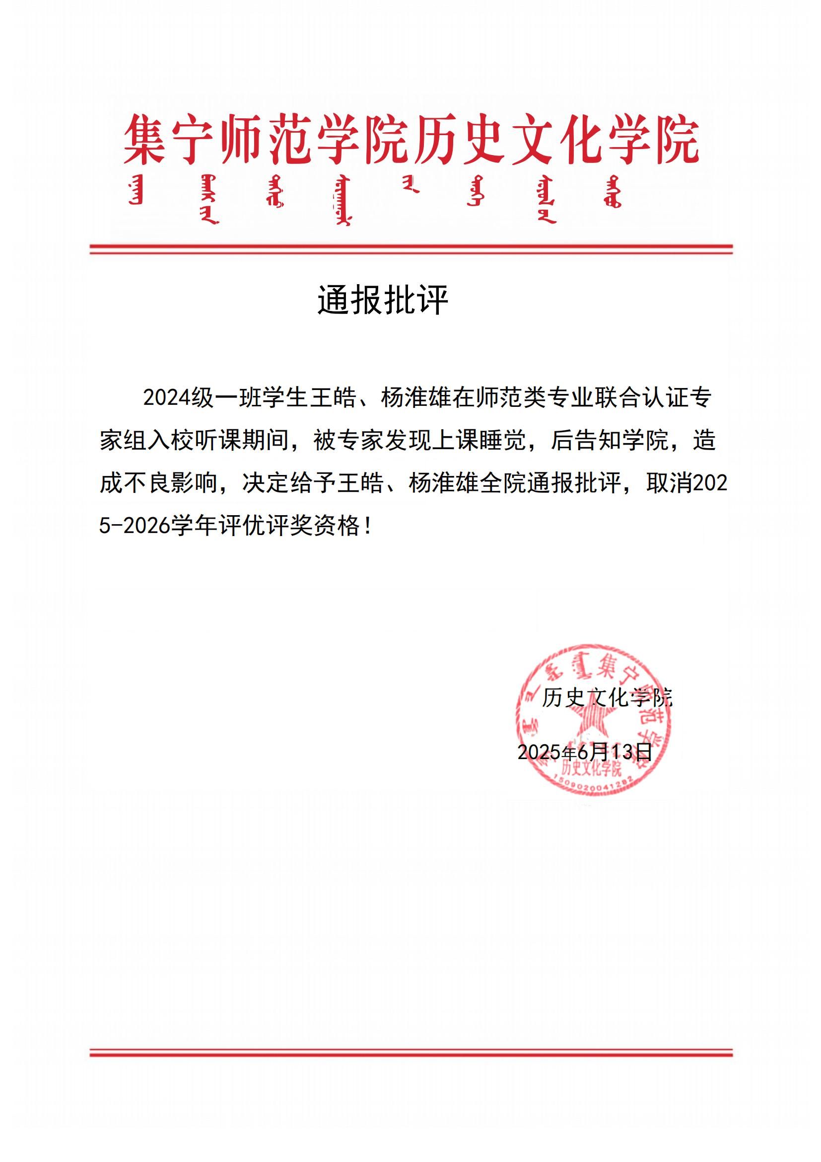 通报批评